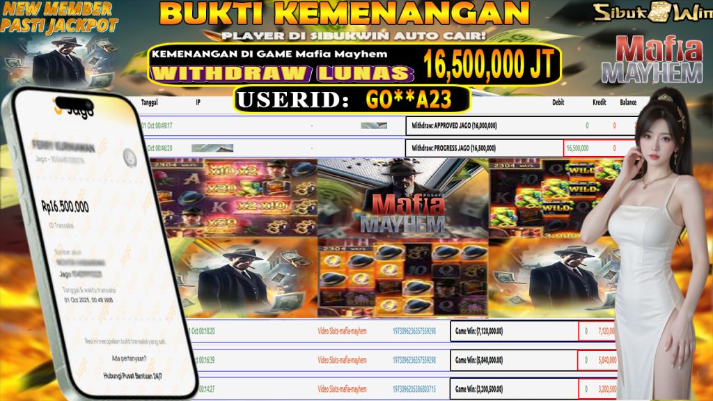 BUKTI KEMENANGAN 01 October 2025 DI GAME Mafia Mayhem 16,5 JUTA