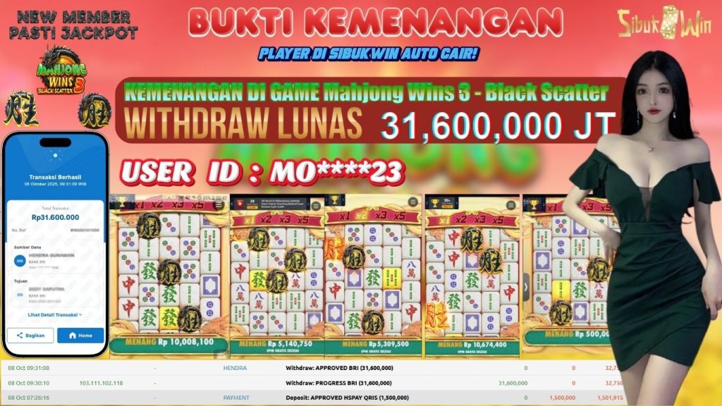 BUKTI KEMENANGAN 08 October 2025 DI GAME Mahjong Wins 3 – Black Scatter 31,6 JT