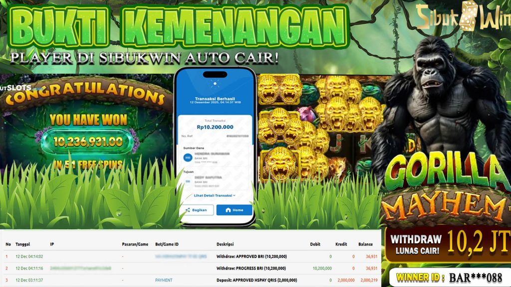 Bukti Kemenangan 12 April 2025 Di Game GORILLA MAYHEM 10,2 JUTA
