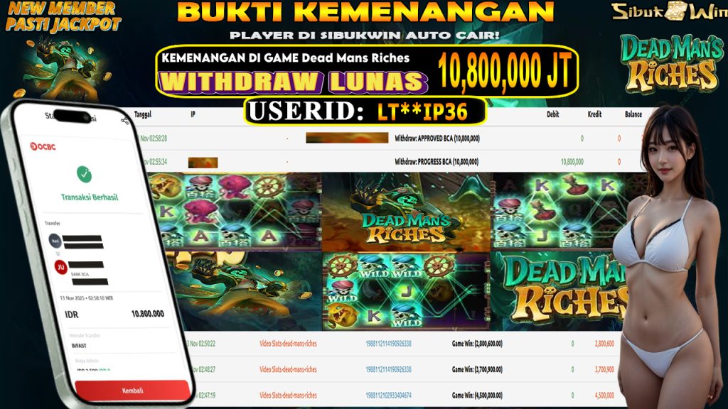 BUKTI KEMENANGAN 13 November 2025 DI GAME Dead Mans Riches 10,8 JUTA