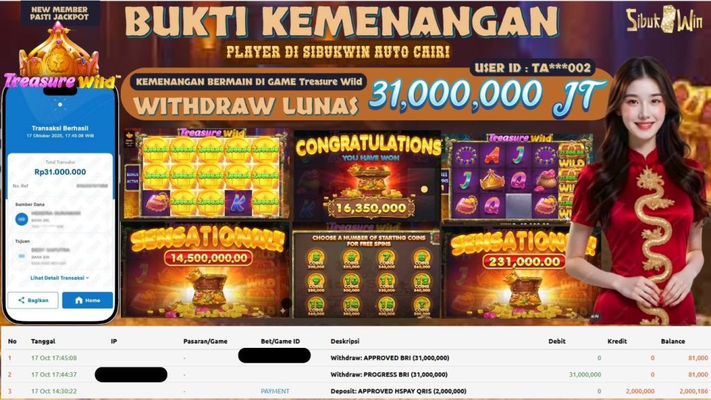 BUKTI KEMENANGAN 17 October 2025 DI GAME TREASURE WILD 31 JUTA