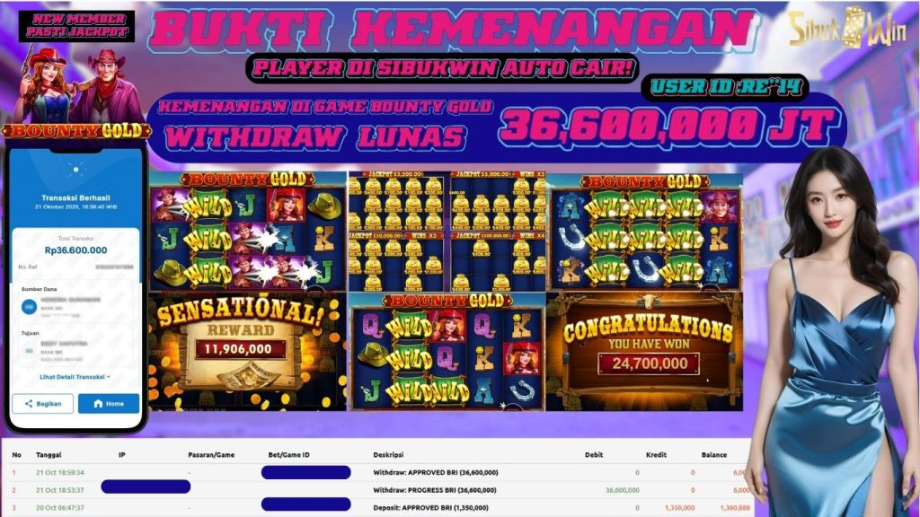 BUKTI KEMENANGAN 21 October 2025 DI GAME BOUNTY GOLD 36,6 JUTA