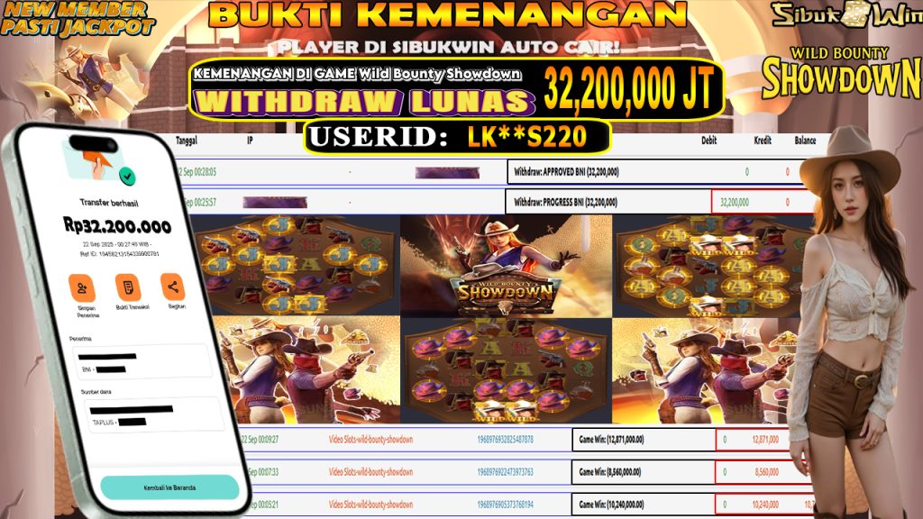 BUKTI KEMENANGAN 22 SEPTEMBER 2025 DI GAME Wild Bounty Showdown 32,2 JUTA